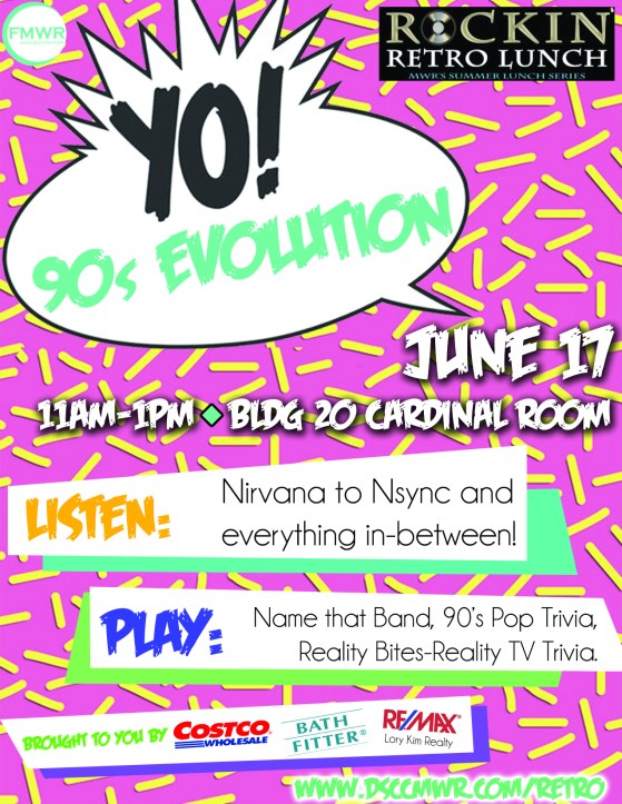 Rockin Retro Lunch Series flyer featuring 90’s music